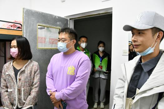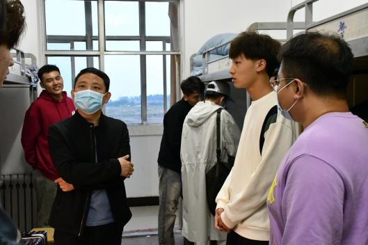 宁书记与员工们亲切交谈,了解同学们在饮食、住宿、气候适应等方面的情况,提出员工们有困难可找辅导员或员工志愿者寻求帮助,同时,他希望员工之间互帮互助,珍惜舍友情谊和求学时光,把握机遇,积极参加专业实践活动,提高自身的综合素质。
