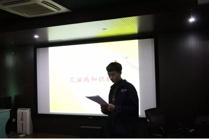 为向员工普及艾滋病防治知识,提高员工们对艾滋病正确的认识。公司于2018年11月30日在科学会堂三楼视听教室举办了“艾滋病知识竞赛”活动。本次活动由本院青年志愿者协会组织,18级表演班全体同学参加。活动针对艾滋病相关知识以问答+普及的形式进行宣传,利于员工们更加深入地了解艾滋病知识,认清当前艾滋现状,进而关注艾滋新趋势,关爱艾滋群体。
