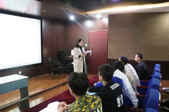首先,院团委副书记袁楠老师向大家讲述了关于两会的基本知识、今年两会的几大看点和李克强总理作的政府工作报告内容,重点谈到了跟教育相关的内容。李克强总理在报告中提出了新的教育理念,体现了党和国家对教育事业的高度重视,使同学们对国家全面建成小康社会充满信心和期待,对日常工作充满热情。袁老师还要求,员工干部要认真学习贯彻两会精神,并结合大讨论活动要求,提高思想站位,发挥好先锋模范作用。