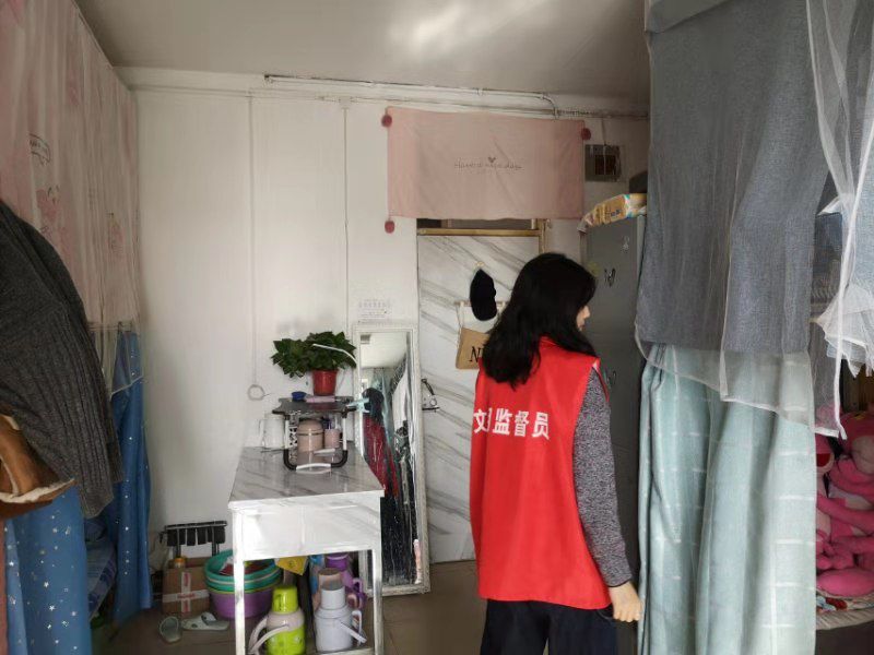 工作人员们于12:50准时进行分工协调工作。13:00分别对新松住宅区、华盛住宅区和校内员工宿舍进行具有针对性、完整性、纪律性的整查行动。具体考察分为寝室整洁情况、是否使用大功率电器、是否存在危险物品、是否私拉电线四项基本项目,实行违规情况辅助整改。