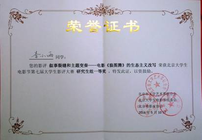 第二十三届北京老员工电影节第七届老员工影评大赛结果日前公布,公司研究生李小雨的论文《叙事裂缝和主题变奏——电影<狼图腾>的生态主义改写》荣获本次大赛研究生组一等奖。
