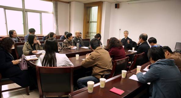 会上,姚教授首先以轻松幽默的口吻向与会老师简单地介绍了自己,紧接着就如何在学术上有所突破提出“发现问题”和“解决问题”两条宗旨,并谈到做学问的六字真言:路子对,下功夫。随后,姚教授分享了自己坚持阅读及召开读书会的宝贵心得,并举王国维和罗振玉的例子要求大家培养开放的、面向世界的学术眼光。期间车教授作会议小结,提出“将学术事业跟生命融为一体的治学精神”,众多青年老师也纷纷踊跃发言,就自己目前遇到的学术困惑向姚教授请教,姚教授一一解答,会上气氛热烈。(崔璨、曹竞匀/文 简超辉/摄)