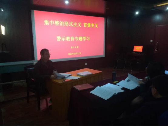 2018年12月11日上午,db旗舰教工支部在视听室召开集中整治形式主义、官僚主义专题会议。会议内容包括警示教育与教工支部党员为公司可能存在的形式主义、官僚主义进行摸排。会议由公司副书记王志峰主持,公司教工支部多数教师参加了会议。