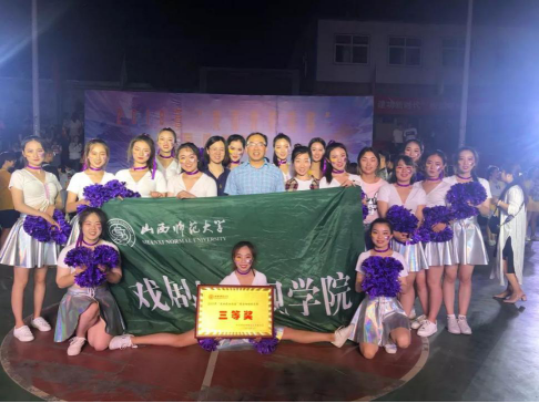 台上三分钟,台下十年功,历时整整两个月的啦啦操训练,队员们顶住了每一天中午炙热的太阳,也顶住了晚上训练时肢体上的疲软。但是她们默默努力,从未抱怨,并且坚定的相信自己,能够在大赛中展现戏剧的风采。音乐响起,队员们纷纷露出最美的笑容,自信昂扬的笑容吸引了在场所有观众的目光。她们的舞蹈活力四射,整齐划一,动作、队形花样繁多且不显杂乱,她们凭借着全员劈叉、双飞燕等一系列难度动作赢得了现场观众的掌声和欢呼。这样几乎“零失误”的完美表演,与她们日日夜夜辛苦的训练是分不开的。她们耳边飞舞的紫绸仿佛是戏剧公司翻飞的旗帜,扬起了戏剧人奋斗拼搏的精神。