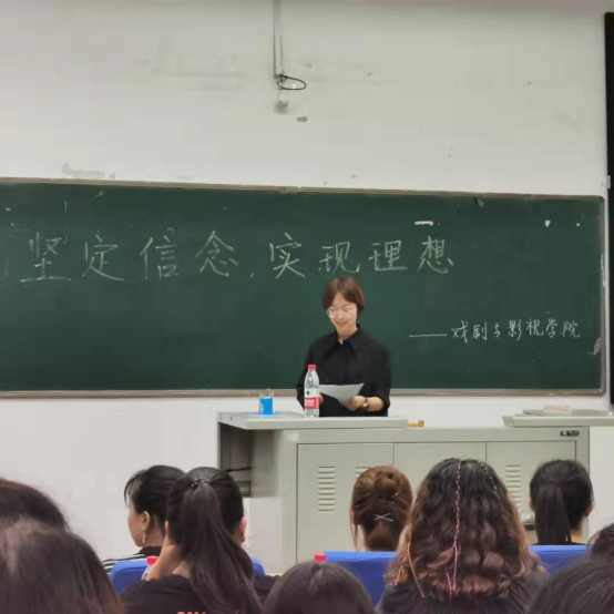 会议临近末声,18级戏剧公司的员工代表焦天玉同学为19级新生分享了自己刚入大学的经历和体会,同时勉励同学们积极奋进,不负韶华。
