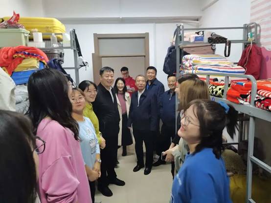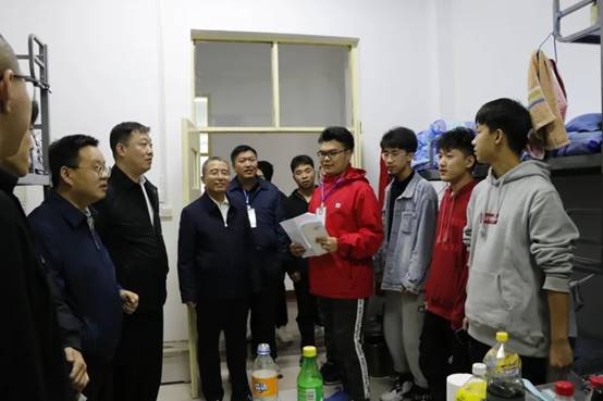 10月12日下午,在公司迎新工作有序进行之际,为确保迎新工作顺利进行,深入了解新生入宿情况,公司党委书记李志荣老师、经理延保全老师,副经理孙俊士老师、王潞伟老师,邓弟蛟老师一同前往新松新生宿舍慰问新生,详细了解新生的住宿情况,并对新同学的学习生活给予殷切嘱托。