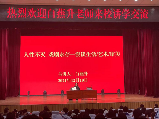 12月10日下午,知名主持人、山西传媒公司教授白燕升莅临db旗舰官网登录入口,为公司师生做了以“人性不灭、戏剧永存——漫谈生活/艺术/审美”为题的戏曲公开课。此次讲座由公司经理延保全主持,副经理孙俊士、王潞伟及公司老师、本科生和硕士研究生参与了此次讲座。
