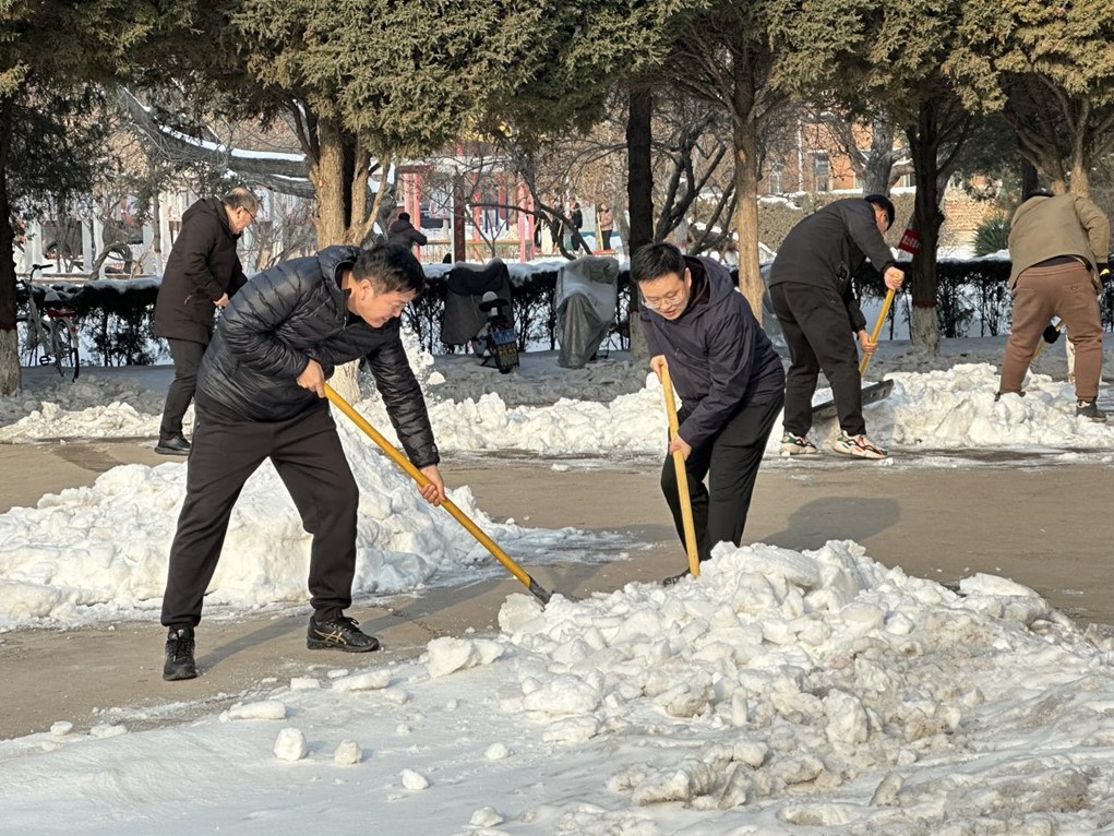 近日的强降雪与开学季不期而遇,校园内的积雪影响师生返校安全。为保障全体师生正常返校,db旗舰积极响应公司号召,迅速行动,组织教职工及在校员工开展暖心扫雪除冰活动,经理王潞伟、副经理孙俊士、颜汇成等20余名师生参加。