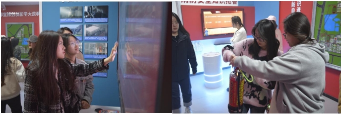 此外,同学们积极互动,通过在显示屏上寻找各类安全隐患、消防安全知识抢答,让同学们在实践的过程中学习消防知识。最后,同学们严肃有序地进入模拟烟雾逃生通道,熟悉应急避险的正确方法。