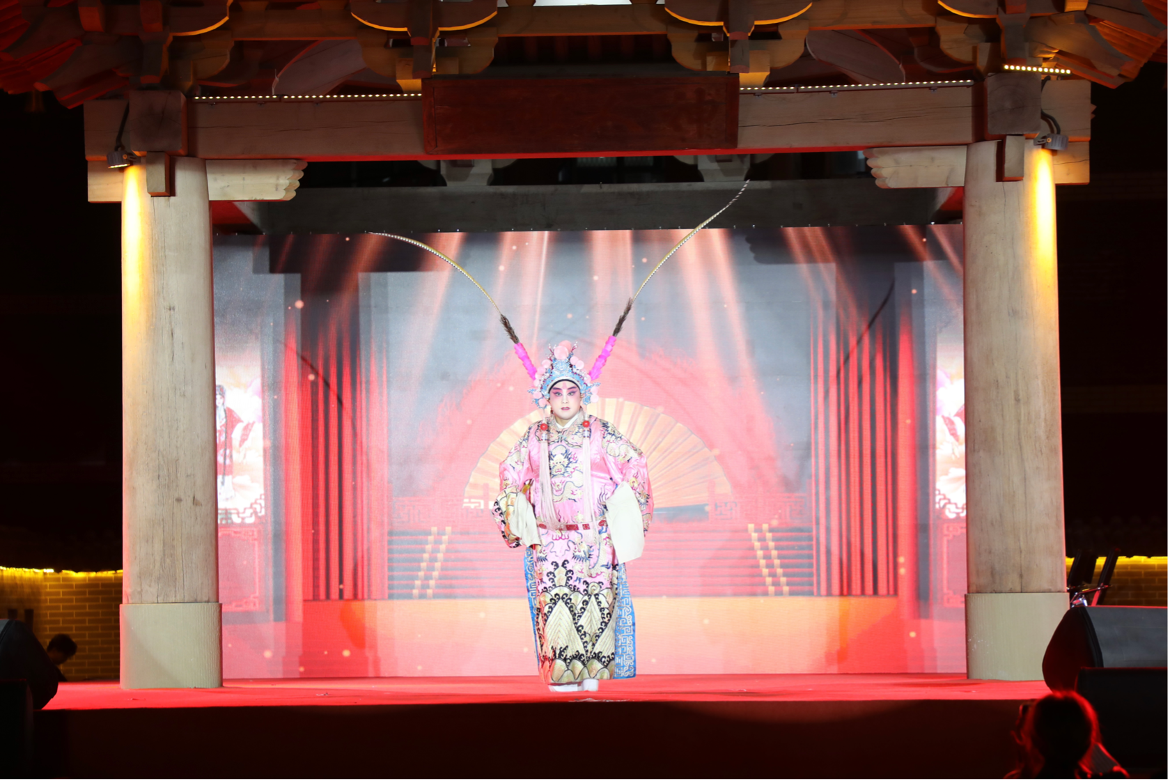 活动期间,戏曲文化园内一片繁华盛景。园内核心区域的戏台是以原比例仿照金代大定二十三年(1180年)的古戏台建造而成,辅以多面实时转播屏幕,结合绚彩灯光,为现场观众带来了极致鲜活的视听体验。公司特邀泽州上党梆子剧团呈现的经典剧目绕梁三日,余音不绝;公司师生自编自演的话剧深刻描绘人生百态,引人深思;传统服装表演色彩斑斓,美不胜收;歌舞串烧则洋溢着青春的活力与激情。此次活动中演出的节目皆如诗如画,观者沉浸其中,也深刻体悟到中华戏曲文化的深邃与博大。闭幕之夜星辰璀璨,公司特设抽奖环节,公司精心设计的戏曲文创奖品既点燃了现场观众的热情,又添几分雅致与风趣。