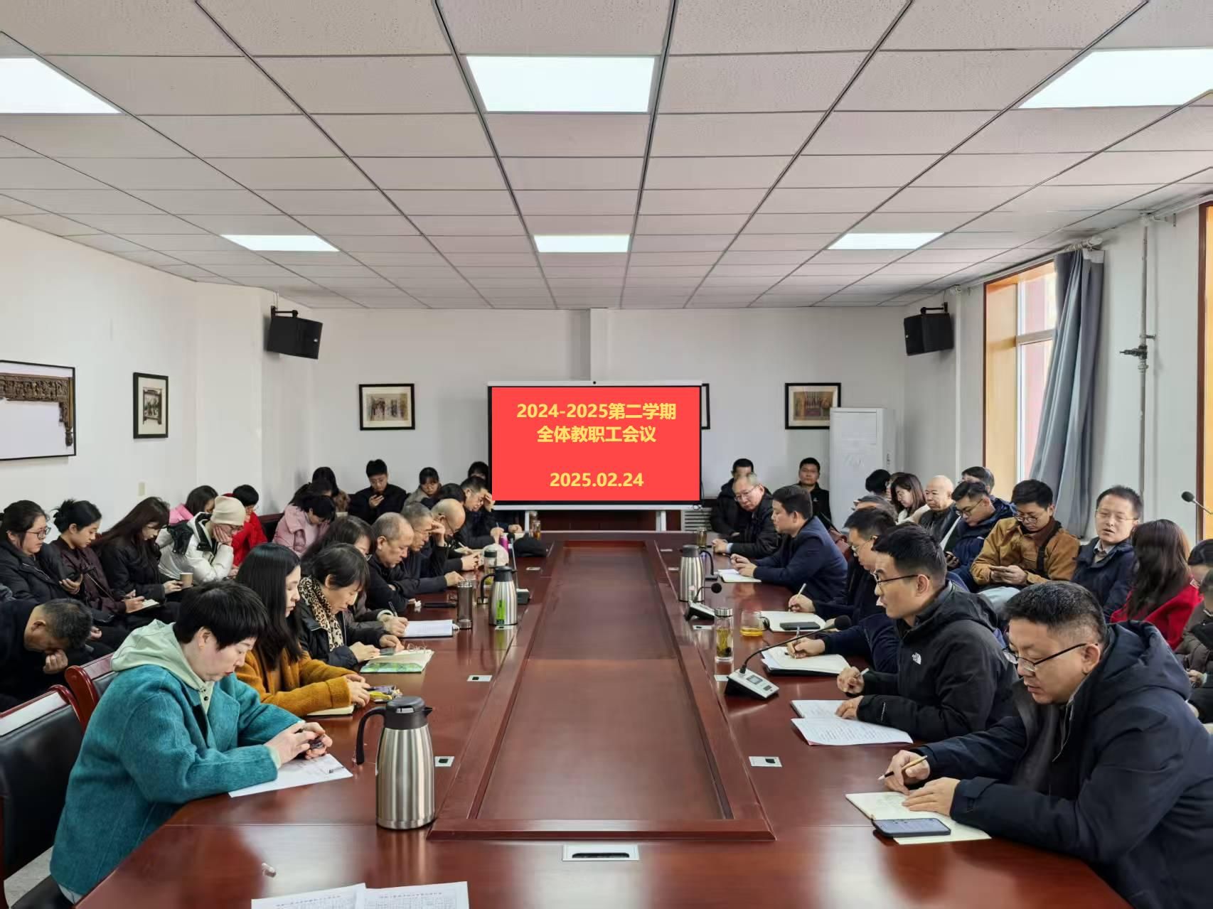 2025年2月22日,公司在401会议室举行全院教职工会议。院领导以及全院教职工参加了会议。会议由副经理孙俊士主持。
