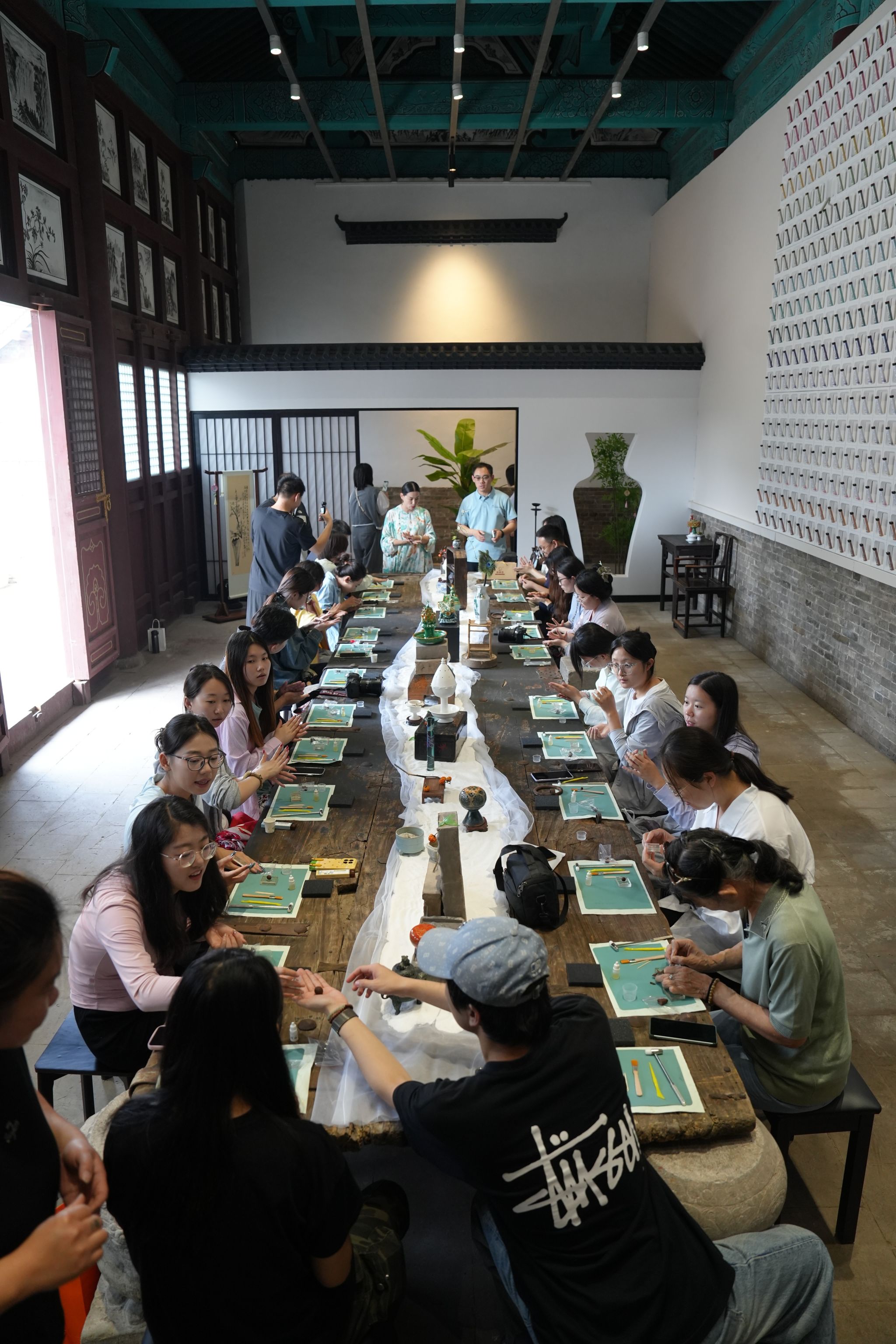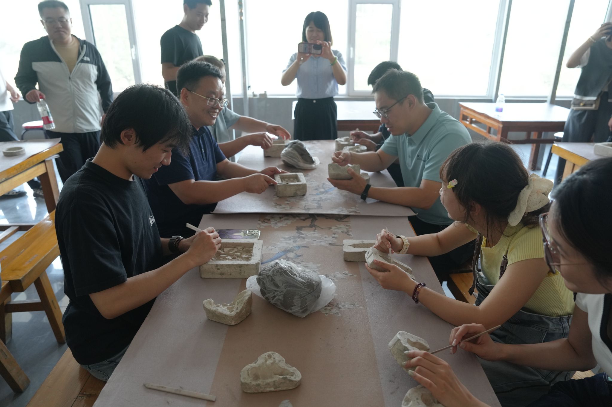 6月28日,考察团分别参观祆神楼、介公祠香文化博物馆、后土庙、洪山恒瑞制香厂、洪山源神庙、刘开宝琉璃工作室。其中,对刘开宝琉璃工作室进行深入调研。国家级非遗项目琉璃烧制技艺代表性传承人刘开宝热情接待了师生一行,详细介绍了其代表作品的艺术特色与文化内涵,并对琉璃制作的历史渊源、工艺流程进行了系统讲解。在刘开宝大师的指导下,其徒弟现场展示了精湛的琉璃制作技艺。公司师生热情参与了琉璃制作的实践体验环节,亲身感受了传统工艺的魅力与匠心。作为此行的重要成果之一,王潞伟经理与刘开宝老师一起揭牌“db旗舰官网登录入口琉璃烧制技艺传承实践基地”,为公司师生搭建了深度研习琉璃非遗技艺的实践平台。