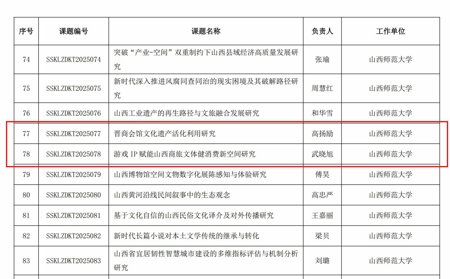 日前,山西省社会科学界联合会公布2025至2026年度重点课题立项名单,公司高扬励副教授申报的《晋商会馆文化遗产活化利用研究》、武晓旭博士申报的《游戏IP赋能山西商旅文体健消费新空间研究》成功获批。