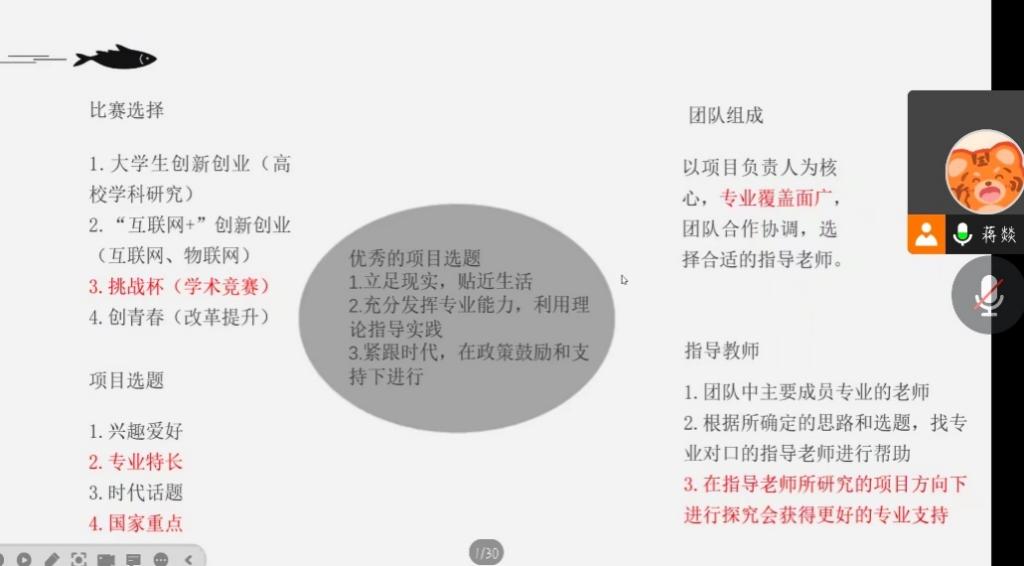 其次,他以自己的项目举例,为我们详细讲述了项目书条理清晰、内容完整的重要性。同时,也着重强调了在项目中团队的分工合作对于项目顺利进行的关键性,以及在创新创业比赛项目中团队人员专业多样化更有助于项目具备一定的吸引力。在网络时代下,他提出线上线下相结合的宣传方式更有利于项目内涵的传播,在提高项目新颖度的同时,与时代相结合更有利于项目进行省级甚至国家级项目评选。