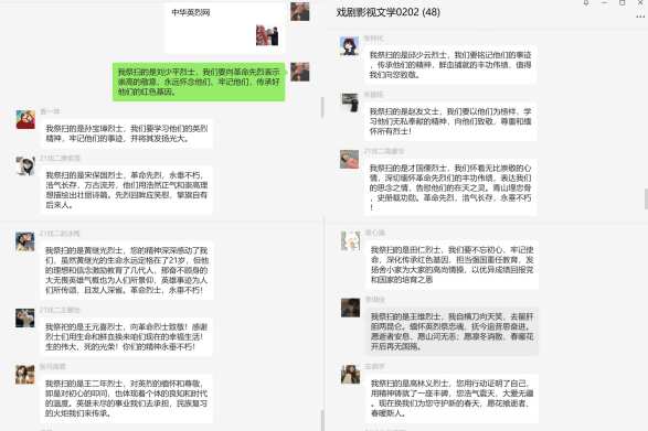 活动中,2101班团支部举办中华经典诵读和网上祭英烈活动,团员青年们通过深入学习先烈的英雄事迹,纷纷表示要珍惜现在的美好生活,勤奋学习;2203团支部通过组织团员青年诵读烈士家书、讲述英烈故事、撰写心得体会等活动,引导全体团员青年在慎终追远、缅怀先辈的情怀中增进爱党、爱国、爱社会主义的情感;2103团支部和2202团支部观看相关视频,团员青年们纷纷表示了对先烈们的崇敬与怀念之情;2201团支部带领团员青年集体朗诵诗歌《峥嵘岁月》,用热情歌颂中国共产党和为国壮烈牺牲的英雄烈士。