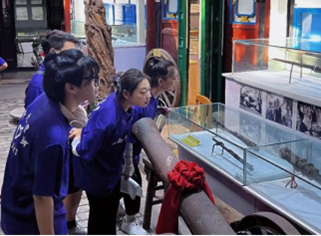 正如习近平总书记所说,“中国革命历史是最好的营养剂,多重温我们党领导人民进行革命的伟大历史,心中就会增添很多正能量”。因此实践队的第二站,便是前往山西省国防教育基地——辽县抗日战争纪念馆。7月18日,“晋火相传·花开太行”实践队队员们肃整衣冠抵达纪念馆。跟随着讲解员的脚步,我们游览了这座清末明初的两层四合院,伴着叙述,“侵华罪证厅”、“抗战实物见证厅”橱窗展柜中的文物仿若变得鲜活,锈迹斑斑的展品不再冰冷,一万五千多件山西军民抗战文物,是苦难岁月的符号,饱含着人民的温度,承载着艰难竭蹶的年代里人民革命的坚定信念。展馆内500余册的《支那事变画报》作为侵略者自证其罪的重要史料,让我们更加坚定了“勿忘国耻,吾辈当自强”的历史使命。