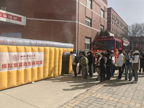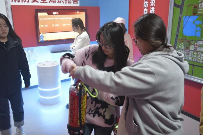 此外,同学们积极互动,通过在显示屏上寻找各类安全隐患、消防安全知识抢答,让同学们在实践的过程中学习消防知识。最后,同学们严肃有序地进入模拟烟雾逃生通道,熟悉应急避险的正确方法。