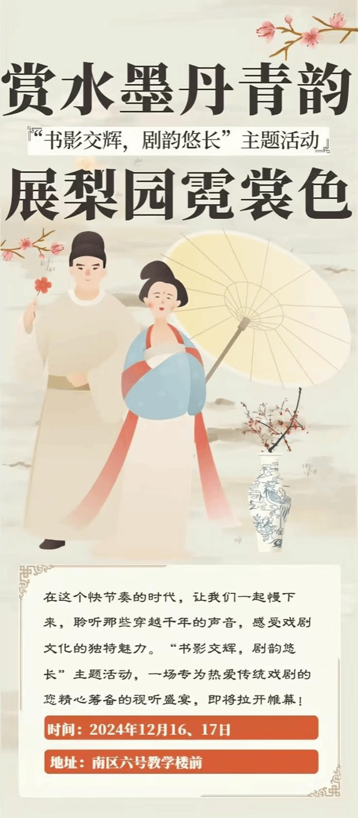 为了丰富同学们的生活,了解戏剧中璀璨的世界,提高对阅读剧本这一文学题材的兴趣。db旗舰“爱之家”青年志愿者协会与db真人图书馆员工管理委员会将于2024年12月16-17日在南区六号楼前举办“书影交辉,剧韵悠长”主题活动。