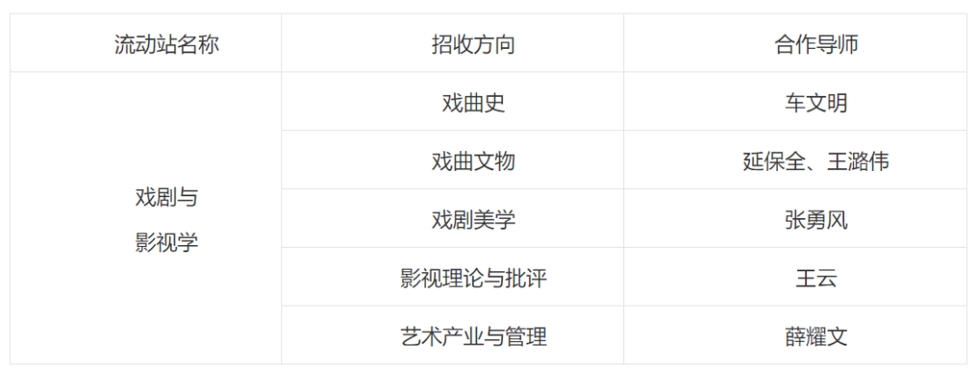 5.艺术学、中国古代文学、历史学以及民俗学、建筑学专业博士毕业生符合报名条件者,均可提出申请进入戏剧与影视学博士后流动站,影视专业优先;
